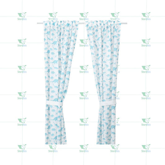 IKEA : JATTELIK : Curtains with Tie Backs - Dinosaur