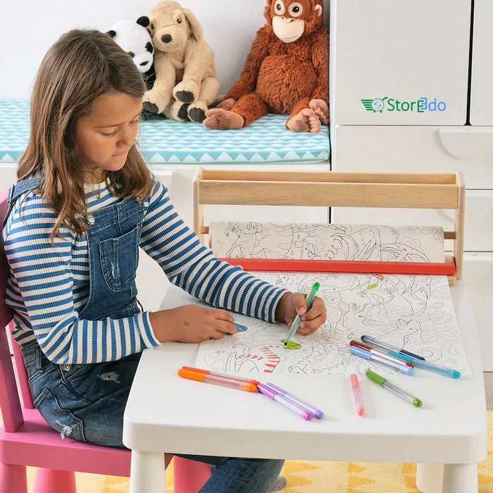 - Joint holder for paper roll, pens and paints; place on a level surface.